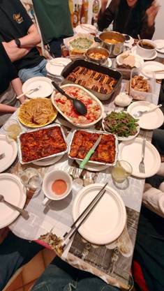 ![]() いろんな国の料理を持ち寄ってパーティー |