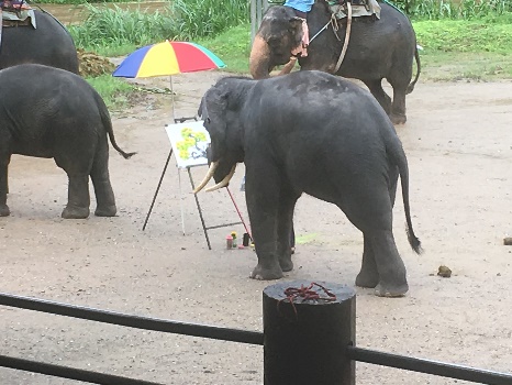 ![]() タイと台湾の友達とエレファントキャンプに 行きました。絵を描くゾウの写真です。 |