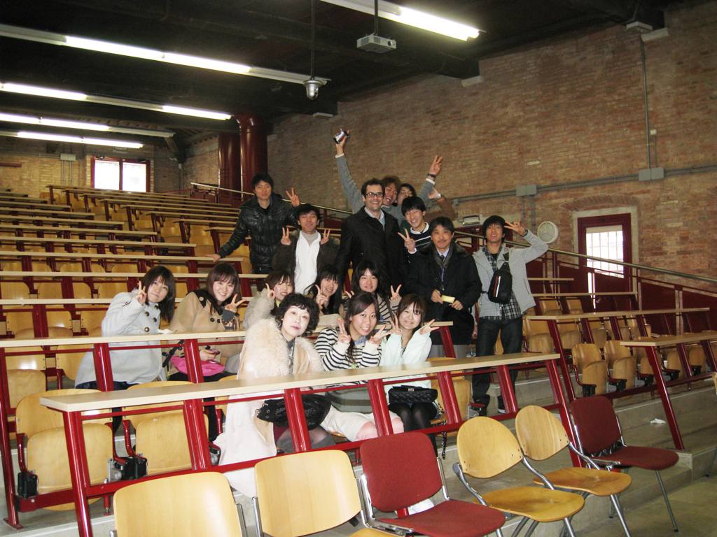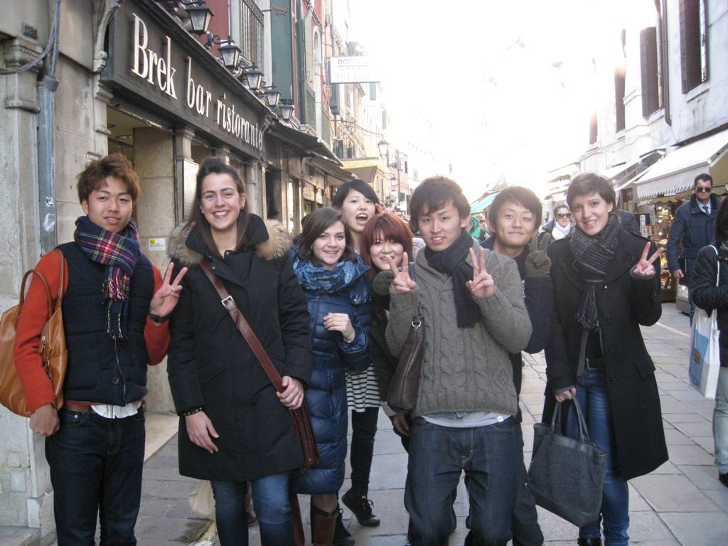 2013年2月25日から1週間、長崎大学経済学部の学生22名と引率教員2名でイタリアのベネチアにあるカフォスカリ大学マネジメント学科にて講義体験と文化交流を行って参りました。1日5時間行われた講義内容はとても豊かなもので、特に中小企業の数が圧倒的に多いイタリアの経済経営の特徴に関する講義は、学生にとって刺激になったようです。講義はすべて英語で行われましたが、イタリア語を多く覚えた参加者もおり、お別れ会では教授陣とイタリア語でコミュニケーションをとることができたようです。また、現地のイタリア人学生の会話内容が政治から人生観におよぶまで日本の学生の話題よりは大人びていることに驚いた学生もいたようです。このように実際に体験を通して肌で感じたことは深く記憶に残ることでしょう。今後のやる気につながってくれることを期待します。