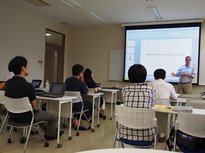 講座には本学部の教職員のほか、大学院生や他学部職員など17人が参加しました。講義内容は大学教育のあり方、クリティカル・シンキング(批判的思考)、プレゼンテーション・スキル(発表技術)、学術論文の書き方等、多岐にわたるものでした。講義は常に講師と受講者との活発な意見交換の中で進行し、非常に活気のあるものとなりました。最終日には本学教員2名によるプレゼンテーションも行いました。