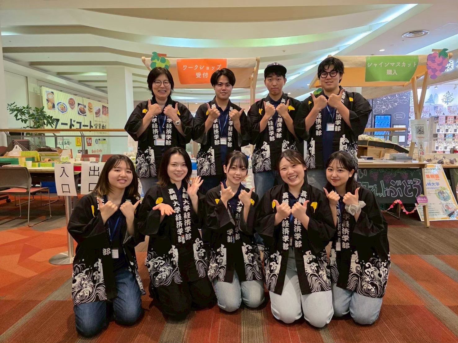 2025年8月2・3日(土・日) に、経済学部の学生が、みらい長崎ココウォーク (長崎市茂里町) でイベント (https://www.econ.nagasaki-u.ac.jp/news/2025/08/2025.08.02a.html) を行いました。野中果樹園が生産したシャインマスカットとBKシードレスの販売と、シャインマスカット等を梱包する箱を参加者がデザインする「コラージュアート」(ワークショップ) を行いました。