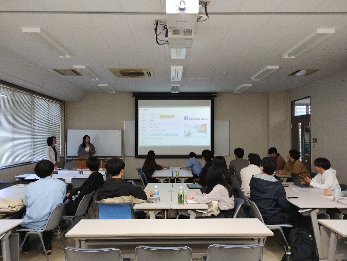 11月6日 (木曜)、経済学部において、株式会社CAC Holdingsによる『「はたらく」を語ろう』というトークセッションを開催しました。セッションには、CACの経営統括本部から塚本わかばサステナビリティ経営推進グループ長、保田恵梨佳コーポレート・コミュニケーショングループ長、ながさきマリンファームの北牧利朗代表取締役、経済学部山口ゼミ・岡田ゼミの学生が参加しました。